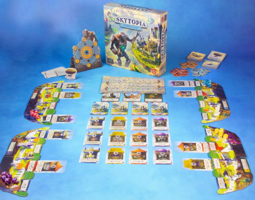 Zrekrutuj potężnych Golemów, zatrudnij wybitnych architektów i zbuduj sięgające nieba wieże, o których krążyć będą legendy! Mądrze zarządzaj swymi zasobami, uważaj na posunięcia innych graczy i wykorzystaj mechanizmy Chronometru na swoją korzyści. W grze Skytopia proste zasady i dynamiczna rozgrywka współgrają ze świetnie wykorzystaną mechaniką dice placement. Czy poprowadzisz swoje miasto do zwycięstwa w wyścigu o zaszczytny tytuł Stolicy Przestworzy?