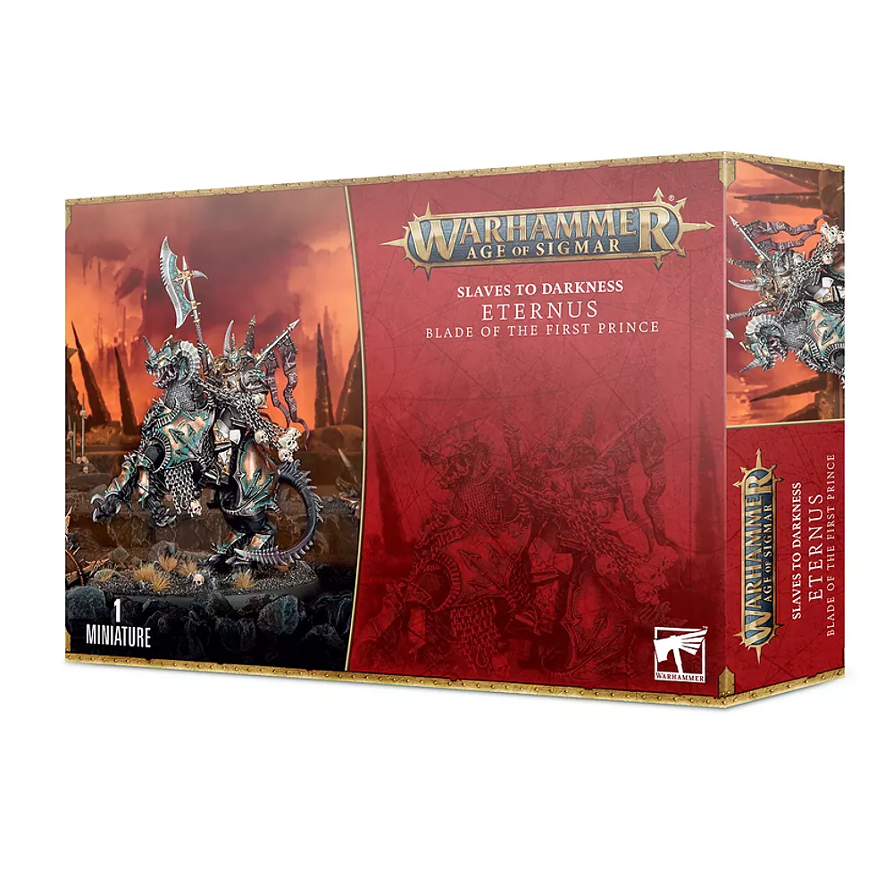 Ten wieloczęściowy plastikowy zestaw pozwala zbudować Eternusa, Ostrze Pierwszego Księcia – nieśmiertelnego egzekutora woli Be'lakora. Ten imponujący czempion Mrocznego Mistrza dosiada swojego demonicznego wierzchowca, potężnego Drakocefalusa, i dzierży zarówno naznaczoną runami glaive śmierci, jak i makabryczną czaszkę-cep. Jego ozdobna zbroja jest ozdobiona pożądliwymi demonicznymi twarzami, godnymi wybranego agenta Pierwszego Księcia, podczas gdy cztery proporce wiszą na jego plecach w parodii rycerskiej chwały, powiewając na cuchnącym wietrze Przeklętych Niebios.