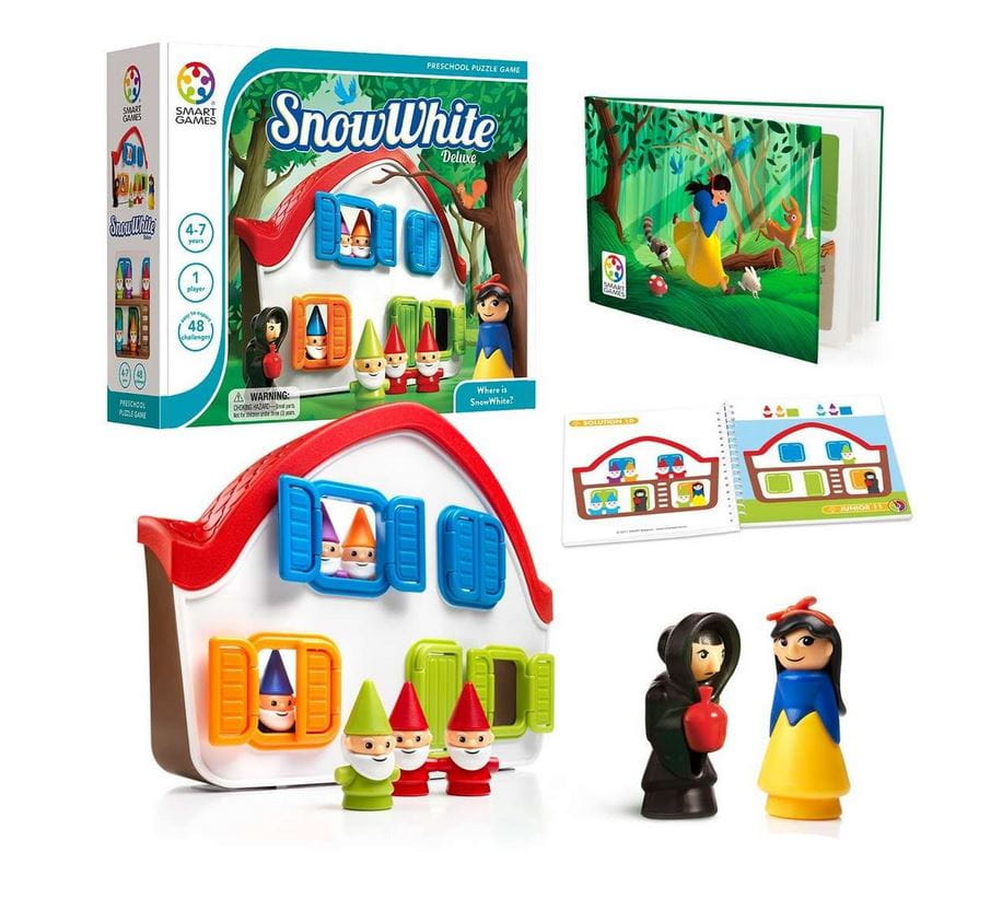 Obracając trójwymiarowy domek i rozwiązując kolorowe zagadki, mały gracz samodzielnie, lub z rodzicem, wkroczy w baśniowy świat. Pomóż krasnoludkom i królewnie znaleźć się w odpowiednich pokojach, a kto wie, może nawet spotkasz złą wiedźmę!