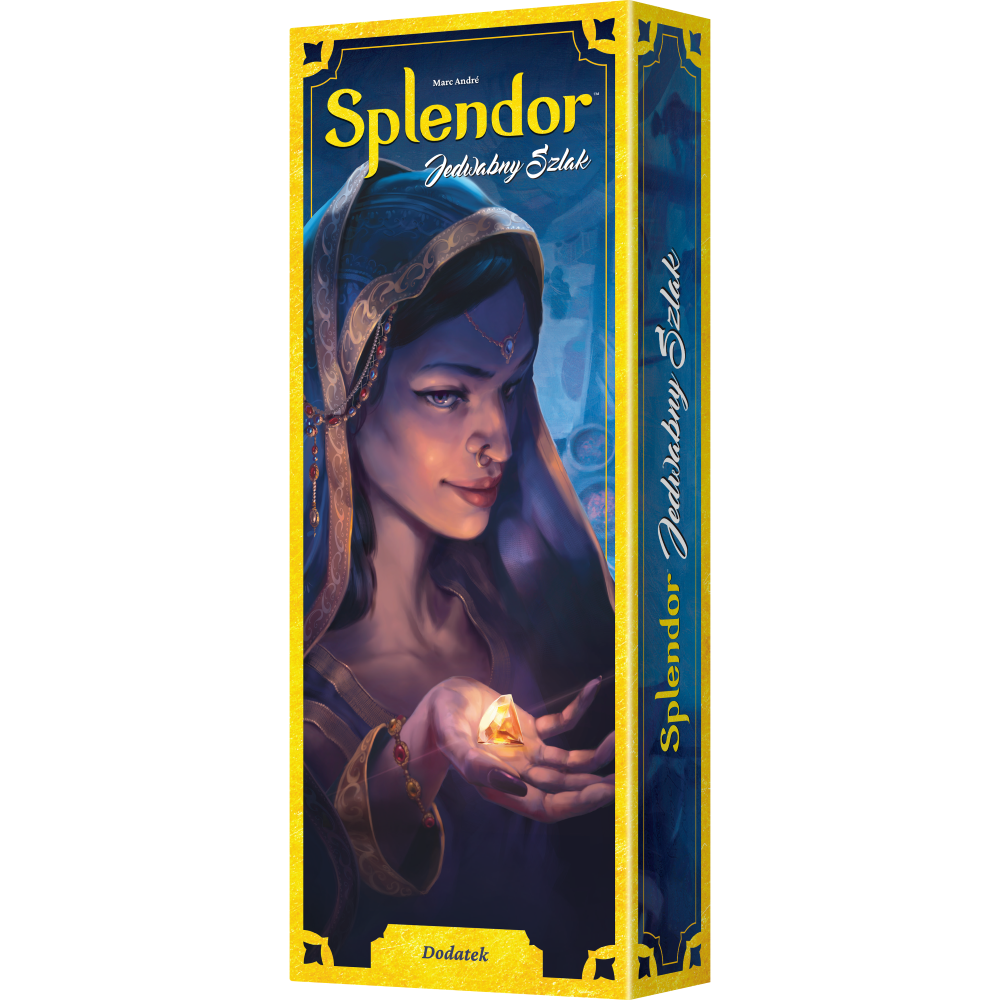 Splendor: Jedwabny Szlak to rozszerzenie zawierające dwa dodatkowe moduły. Miasta wprowadzają specjalne płytki zastępujące arystokratów, dzięki którym zwiększa się rywalizacja między graczami. Z kolei placówki handlowe oferują nowe płytki ze specjalnymi efektami, które mogą zapewnić nam przewagę w walce o prestiż. Moduły można wykorzystać samodzielnie lub razem, by stworzyć własną, jeszcze bardziej strategiczną rozgrywkę.