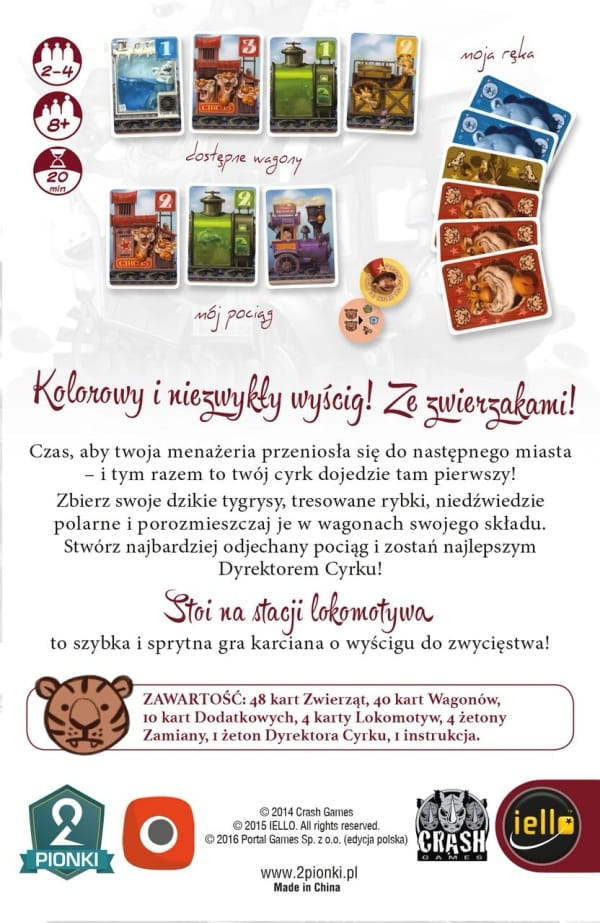to gra dla całej rodziny, w której będziecie - podobnie jak w pięknym wierszu Jana Brzechwy - doczepiać do swojej lokomotywy kolejne wagony, w tym wypadku pełne lwów, żyraf, niedźwiedzi i innych zwierzaków!