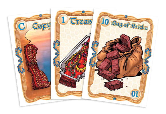 Straw is a light-hearted family card game that takes place in the world of Arabian Nights. In Straw, you try to pack as many items as you can on top of a camel without breaking its back. If you can't, you lose the round – but other players must be careful not to load the camel too close to its limit because if you can break the camel's back with the Straw card, you win instead of losing!