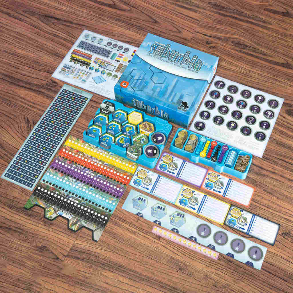 Suburbia to strategiczna gra planszowa Teda Alspacha (Zamki szalonego Króla Ludwika, Słowołaki, Wilkołak), reedycja kultowego tytułu z 2012 roku, w którym na 90 minut staniecie się architektami i budowniczymi miasta. Gra cechuje się prostymi zasadami, dynamiczną rozgrywką i ogromną regrywalnością, dzięki wykorzystaniu mechaniki aukcji i draftu heksów. Podczas swoich tur będziecie wykonywać kolejno 4 akcje: umieszczenie kafelka Budynku albo znacznika Inwestycji, pobranie Dochodu albo zapłacenie podatku, dostosowanie pozycji na planszy Populacji oraz dodanie nowego kafelka do Rynku Nieruchomości. Każda decyzja wpłynie na wasze dochody, mieszkańców i reputację. Wszystko po to, aby pod koniec rozgrywki to właśnie wasza Dzielnica była najlepiej rozwinięta i posiadała najliczniejszą populację. Pudełko Suburbii posiada świetną wypraskę, która bez problemu pomieści nie tylko podstawkę, ale i zawartość dodatku Suburbia Rozszerzenia.