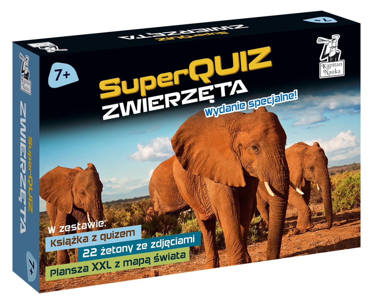 Popularny SuperQuiz Zwierzęta z ciekawostkami i zagadkami oraz atrakcyjnym gratisem: 24 żetony ze zdjęciami zwierzą oraz mapa świata z zaznaczonym miejscem występowania poszczególnych gatunków.