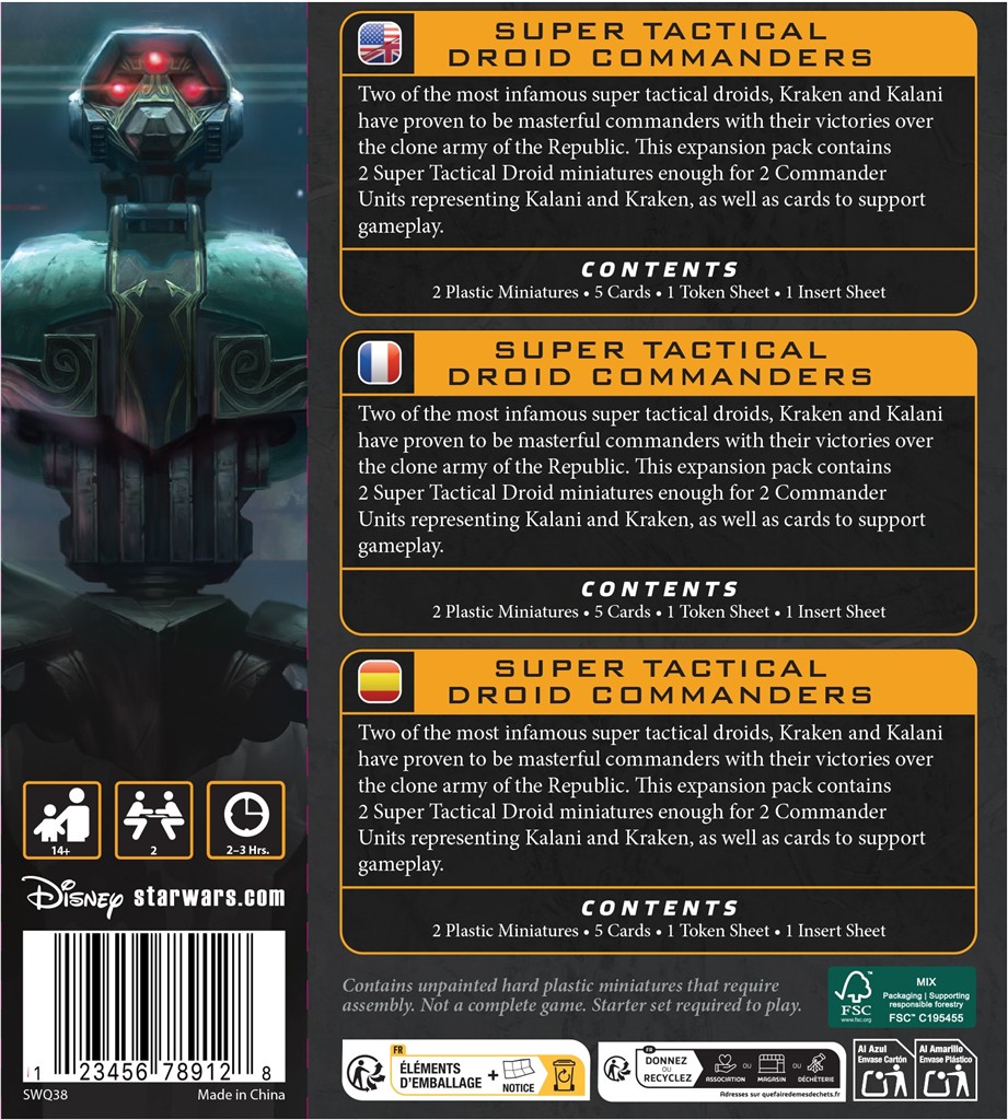 Reedycja zestawu SWL86, obecnie jako SWQ38, wprowadza zaktualizowane karty w nowoczesnym wielojęzycznym formacie SWQ, nową estetykę opakowań oraz wykonane z twardego plastiku figurki dwóch Super Tactical Droidów.