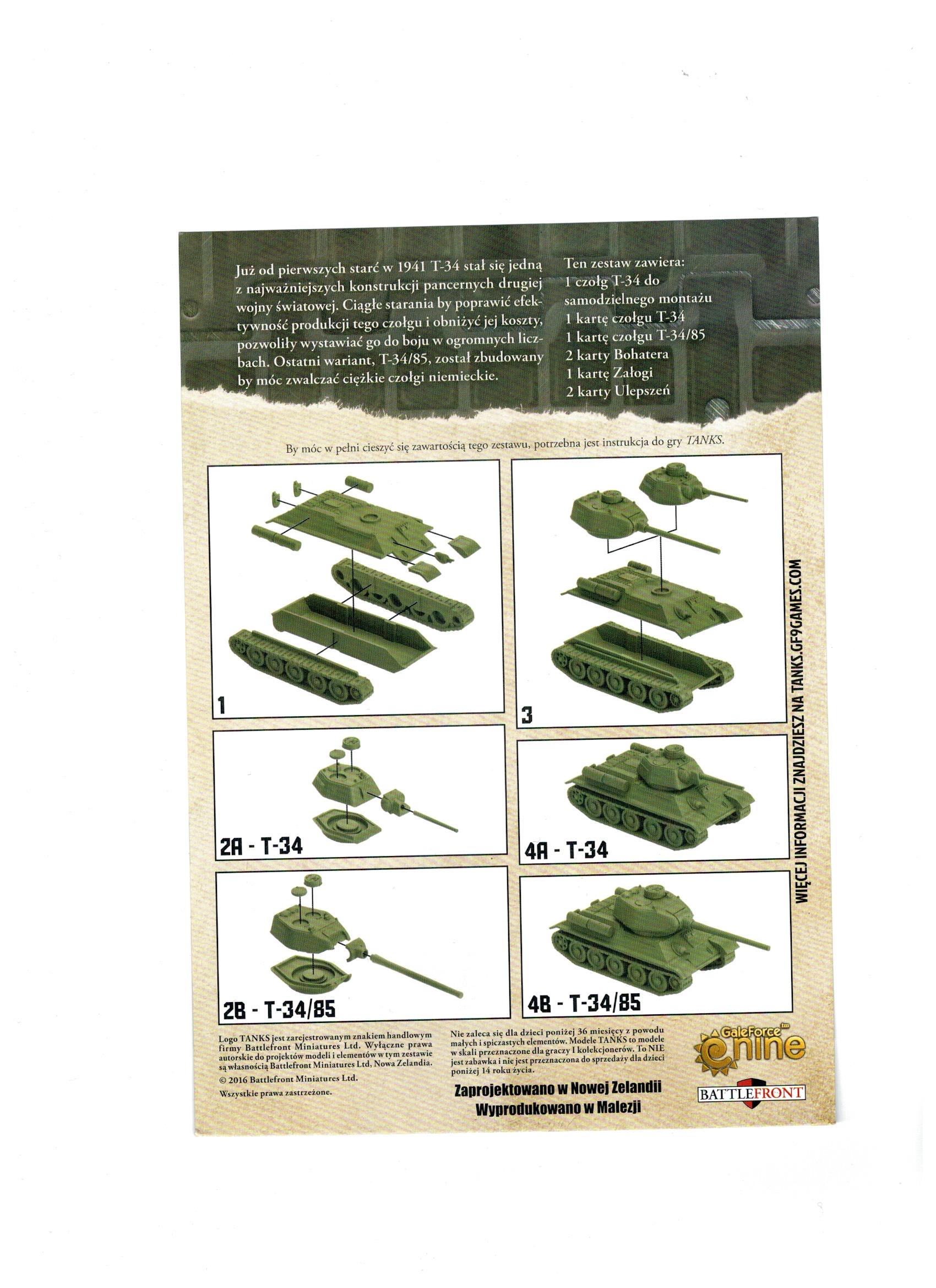 - 1x Karta czołgu T-34/85