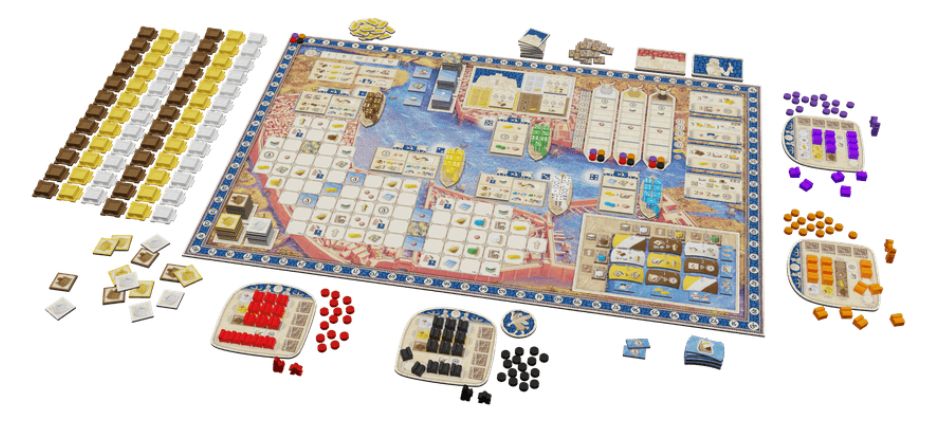 Plansza podzielona jest na 5 dzielnic, a każda z nich powiązana jest z określoną kością. W swojej turze będziemy aktywować jedną z dzielnic, aby zwiększać swoje wpływy, powiększać place budowy, zamieniać je w budynki, zdobywać przychylność króla oraz statki. Pobierane kości z jednej strony stanowią zasób we wskazanym kolorze, zaś ich wartość określa dzielnicę, którą będziemy mogli aktywować w następnej turze.