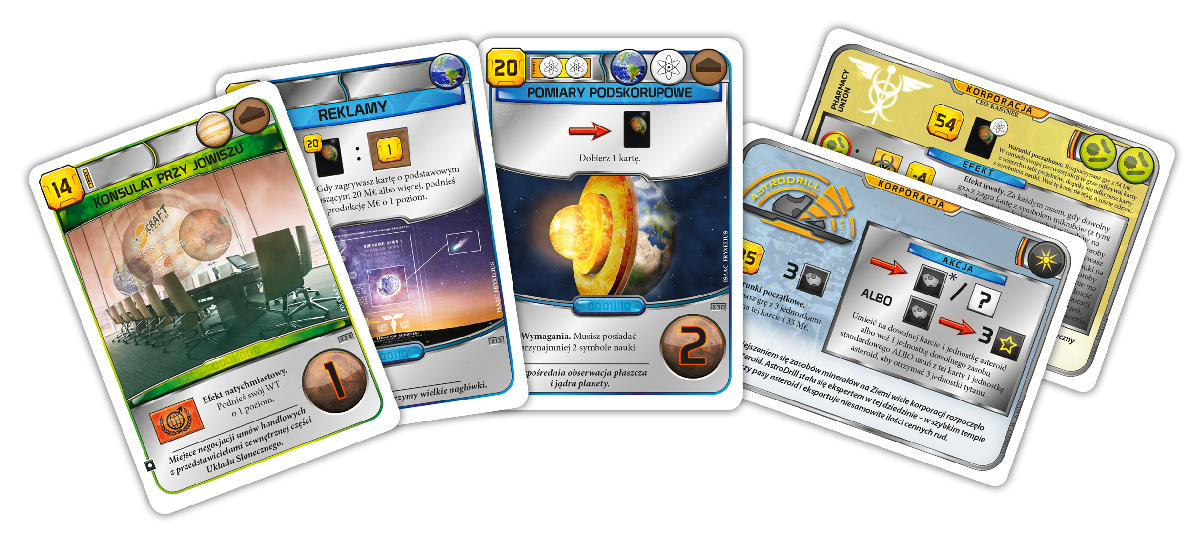 Jeszcze więcej kart, wpływających na rozgrywkę w Terraformację Marsa! Rozwijaj się w nieznanych dotąd kierunkach i jeszcze mocniej określaj swoją strategię. Wciel się w przedstawiciela jednej z dwóch nowych, potężnych korporacji i realizuj jej założenia. Zainwestuj w reklamę o spektakularnej stopie zwrotu lub niczym Mark Watney z "Marsjanina" hoduj na czerwonej planecie cenne ziemniaki. Przyszłość Marsa leży w Twoich rękach!