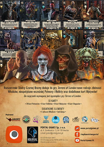 Terrors of London: Słudzy czarnej bramy to dodatek do gry Terrors of London. Jest to pięknie wydana gra karciana z budowaniem talii w motywach wiktoriańskiej powieści grozy. Przeznaczona jest dla 2 graczy. Dzięki ciekawym właściwościom kart, gra różni się od innych tytułów z mechaniką deck buildingu, a dodatkowo każda z postaci posiada unikatowy zestaw kart dla większej regrywalności i asymetryczności rozgrywki.