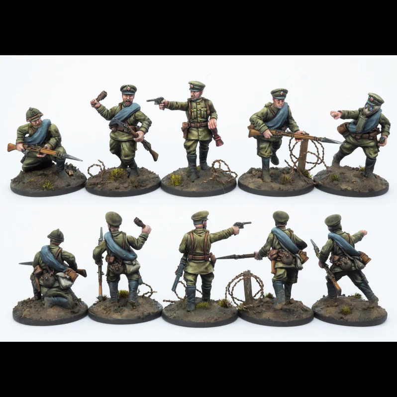 Zestaw ten pozwala zbudować do 35 rosyjskich żołnierzy piechoty, wyposażonych na I wojnę światową i nadających się do rewolucji rosyjskiej i nie tylko. Wybór rodzajów czapek i hełmów pozwala na modelowanie różnorodnych typów wojsk, w tym oficerów, żołnierzy Armii Czerwonej, Armii Białej oraz żołnierzy w maskach gazowych. Karabiny Moisin Nagant, pistolety i szable oficerskie oraz granaty zapewniają szeroki wybór uzbrojenia.