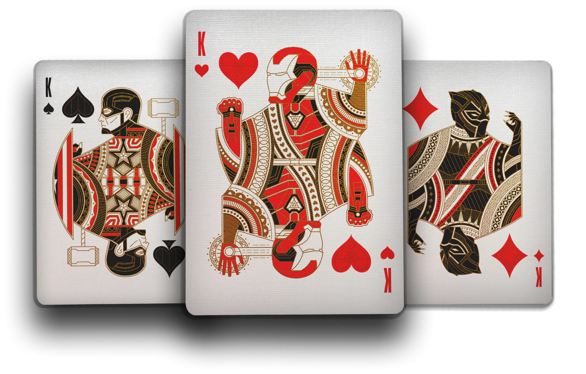 Unikatowa jest również każda karta talii - zawiera autorską grafikę nawiązującą do serii o superbohaterach. Wśród nich znaleźć można: Kapitana Marvela, Czarną Panterę, Spider-Mana, Kapitana Amerykę, Iron Mana, Thora, Hulka i innych.