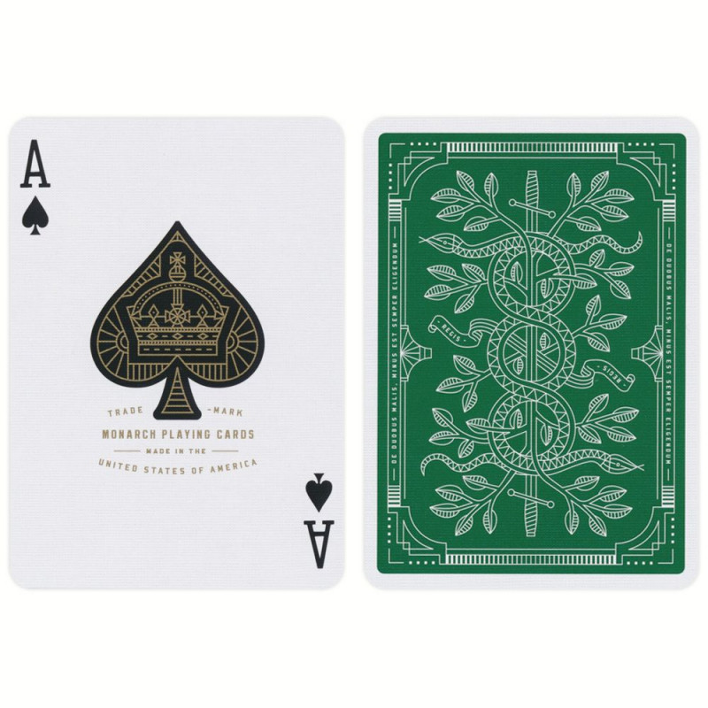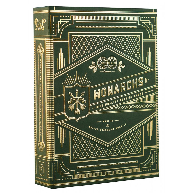 Najlepsze na świecie karty do gry to znak firmowy Theory11. Talia MONARCHS została ilustrowana przez Curtisa Jinkinsa. Karty są eleganckie, zapierające dech w piersiach i królewskie. TheCoolist.com nazwał je „najlepszymi kartami na świecie”. Nic dziwnego, że MONARCHS stały się jednymi z najbardziej cenionych luksusowych kart do gry naszych czasów. Talia MONARCHS została wyprodukowana przez The United States Playing Card Company przy użyciu certyfikowanego papieru FSC uzyskanego z lasów, gdzie każde ścięte drzewo jest zastępowane nasionem, by po pewnym czasie w tym samym miejscu wyrosło kolejne drzewo. Tusze użyte do produkcji tych kart są pochodzenia roślinnego i opartego na skrobii laminatu. Wynikiem tego wszystkiego są wytrzymałe talie powstałe w zgodzie z naturą.