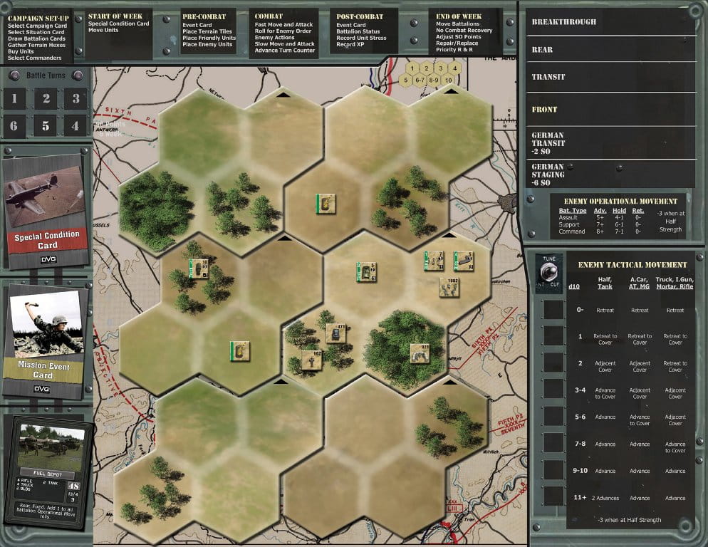 In Tiger Leader, you're in command of a German Kampfgruppe of tanks, armored cars, trucks, halftracks and supporting infantry. Your Kampfruppe may also be assigned air support and heavy weapons support in order to achieve your goals. Your goals are to take your objectives while trying to keep as many of your men alive as possible during realistic tactical missions. Tiger Leader features nine historical campaigns that can be played as individual campaigns or linked to form one huge mega-campaign that follows your troops from the Invasion of Poland to the final battles on the Eastern and Western fronts. The scheduled campaigns include: The Invasion of Poland 1939 The Battle for France 1940 The Battle for North Africa 1941 The Invasion of Russia 1941 The Battle for North Africa 1942 The Fight for Italy 1943 The Fight for Russia 1943 The Days of D-Day 1944 The Final Days in Berlin 1945 A major part of the game is mission planning. You decide which vehicles and infantry units to use and which commanders are best for the mission. Vehicle and infantry commanders are rated for skill level and even personality quirks such as how well they keep their heads while under fire. Deciding which commanders are used for each mission is a major consideration. Your units will become fatigued with every mission. If you push a commander and his men too hard, his skills will degrade. Your commanders and their crew also gain experience with every mission. This makes for some great decision-making. Should you keep fighting with your top commanders and crew and further fatigue them to get the job done, or let the new guys fight in order to prep them for the tough missions ahead? Missions are quickly resolved using an area movement system to display tactical combat. Speed and realism take top priority in this game. Terrain cards randomly generate each battlefield. Double sided terrain tiles provide everything from cities and farmland to snow covered forests and hills to sand dunes and oases. During combat, you get to resolve every fight with enemy tanks, infantry, anti-tank guns, and squads of infantry. Each enemy tank, truck, infantry, etc is represented by its own counter on the battlefield. A unique fog of war system adds to the tension of the combat as unless you have a clear line of site to the enemy, you may not know exactly what is coming out of the morning fog towards your tanks until it’s too late. After combat, you can rest and refit your vehicles and infantry. As new technology becomes available, you can replace older obsolete tanks with newer and deadlier models such as the Tiger, Panther and even the deadly King Tiger! If you’ve played Hornet Leader, Phantom Leader or Thunderbolt/Apache Leader, you’ll make an easy transition into Tiger Leader. We’ve included the cards for every commander to progress in experience from Newbie, to Green, Average, Skilled, Veteran, and Ace!