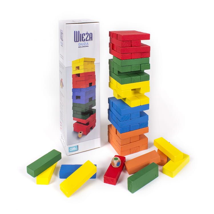 Zasady są bardzo proste : na stole ustawiana jest wieża ze wszystkich klocków (każde piętro z 3 klockami), a gracze po kolei starają się ostrożnie wyciągnąć jeden klocek z wieży, nie burząc jej. Kostka ustali, który kolor klocka musisz wyciągnąć. Po wyciągnięciu klocka, umieścić go z powrotem na górze wieży i tylko przy użyciu jednej ręki! Kto przewróci wieże, ten przegrywa.