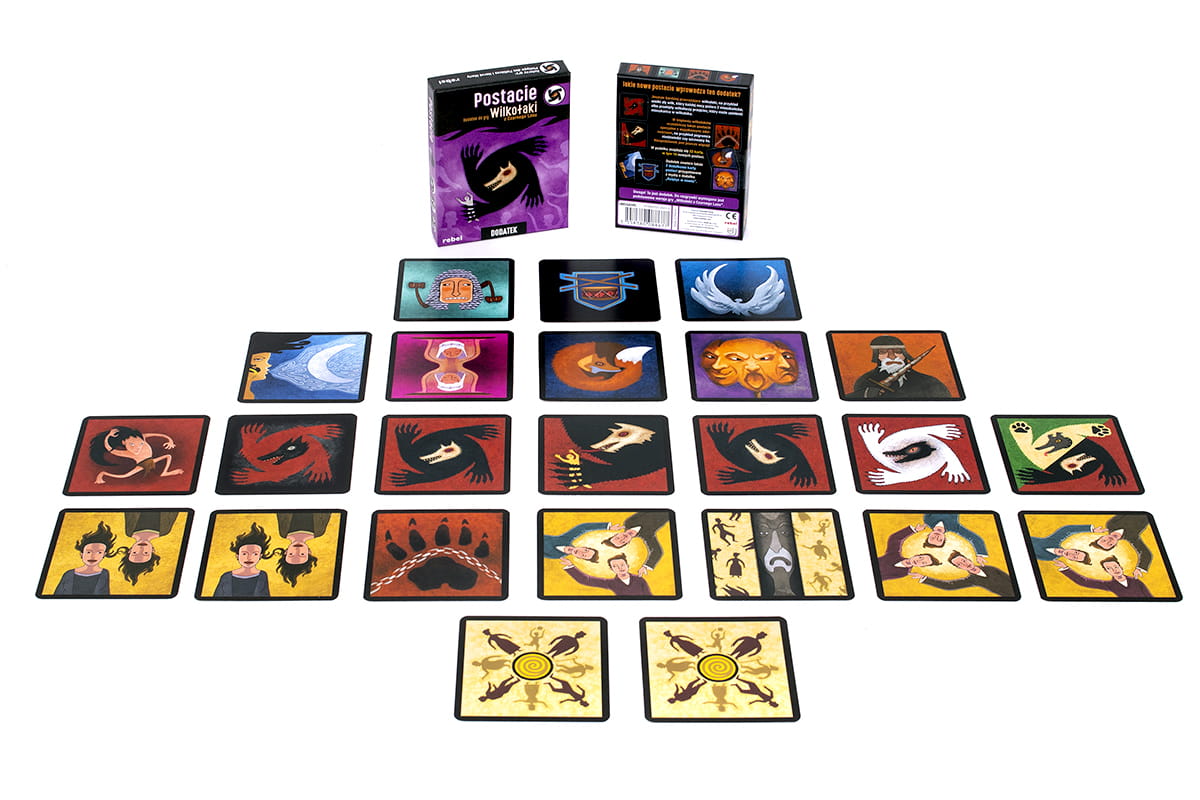 Postacie to rozszerzenie do gry Wilkołaki z Czarnego Lasu, wprowadzające aż 24 nowych bohaterów, z których część z determinacją stanie na straży spokoju mieszkańców wsi, podczas gdy inni będą dla nich śmiertelnym zagrożeniem. Dzięki Postaciom możecie zaprosić do zabawy aż 28 osób jednocześnie, a każda z rozgrywek będzie jeszcze bardziej urozmaicona.