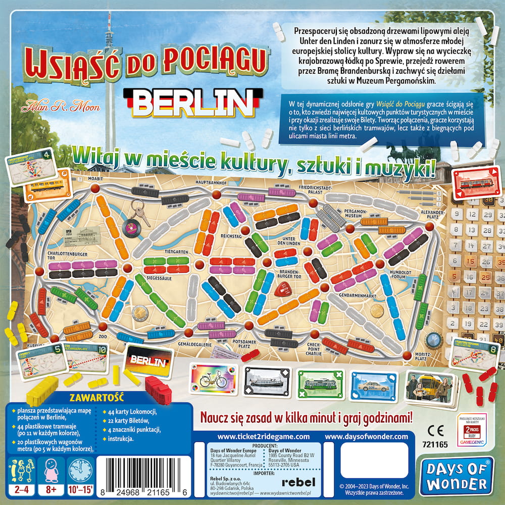 Wsiąść do Pociągu: Berlin to dynamiczna odsłona popularnej serii, w której gracze ścigają się o to, kto zwiedzi najwięcej kultowych punktów turystycznych w mieście i przy okazji zrealizuje swoje bilety. Tworząc połączenia, gracze korzystają nie tylko z sieci berlińskich tramwajów, lecz także z biegnących pod ulicami miasta linii metra.