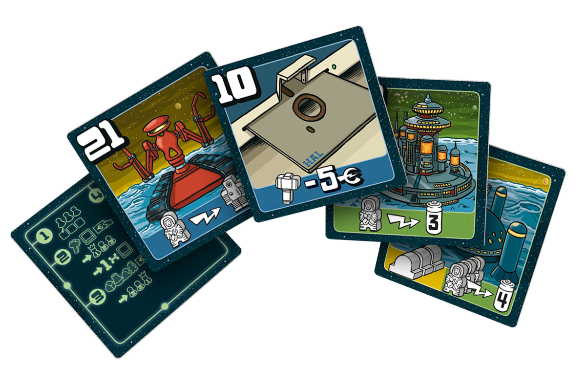 - Licytacja kart, podczas której kupujemy nowe elektrownie, moduły mieszkalne dla pracowników oraz technologie, które mają nam pomóc pokonać przeciwników.