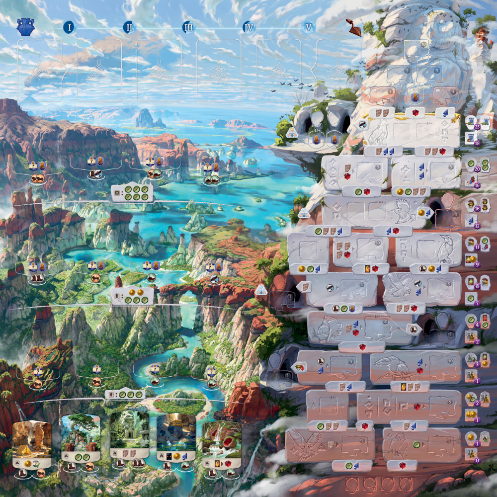 - Nową, dwustronną planszę główną, dzięki której zbadacie jasną stronę mapy i wdrapiecie się po białych kamieniach Świątyni Sowy, a nocą wyruszycie przez ciemne jaskinie Świątyni Pająka.