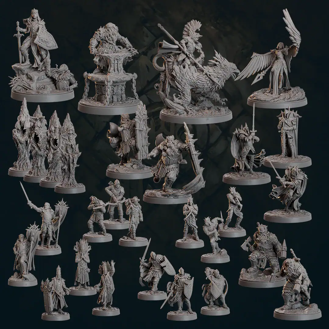 UWAGA! Zestawy startowe do gry Malediction nie zawierają modeli! Wewnątrz znajdziecie tekturowe „standees” które zastępują modele oraz specjalny kod umożliwiający druk 3D modeli do gry.