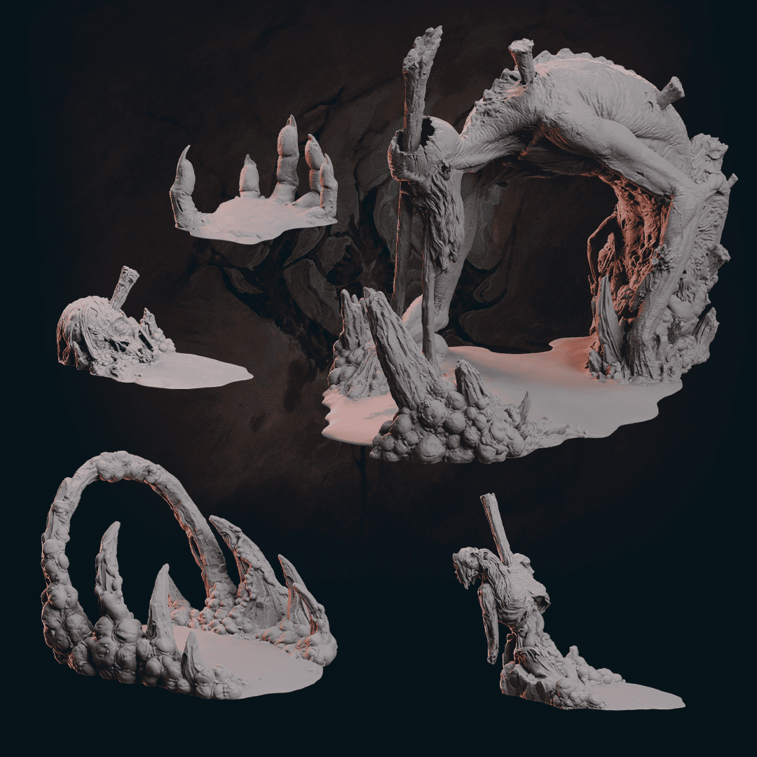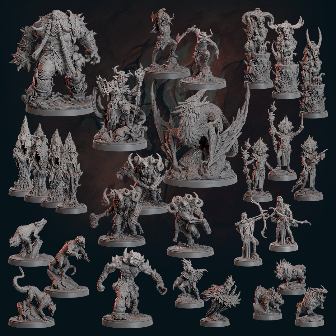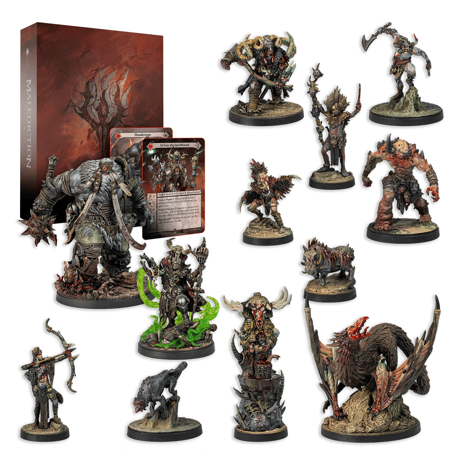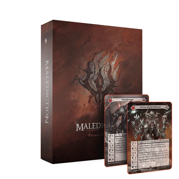 UWAGA! Zestawy startowe do gry Malediction nie zawierają modeli! Wewnątrz znajdziecie tekturowe „standees” które zastępują modele oraz specjalny kod umożliwiający druk 3D modeli do gry.