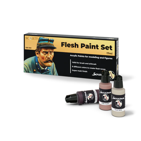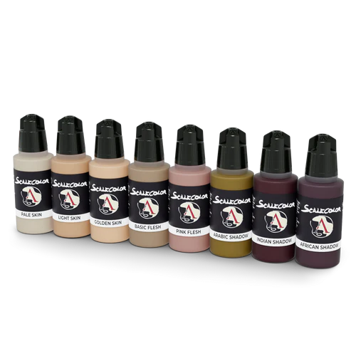 Zestaw ośmiu farb w kolorach cielistej skóry od Scale 75.