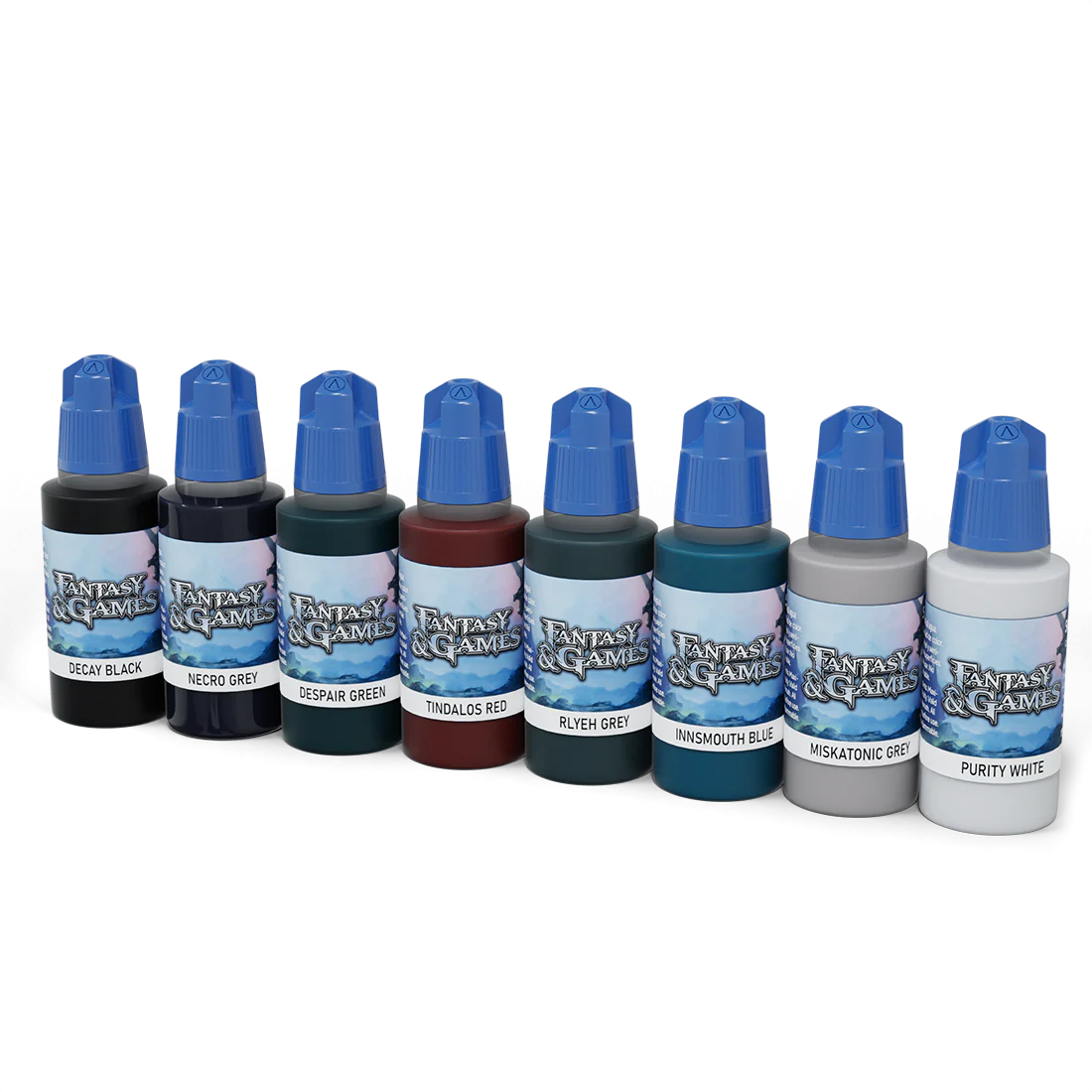 Zestaw 8 farbek przeznaczony do malowania wszystkich typów figurek, a w szczególności figurek do gier bitewnych.