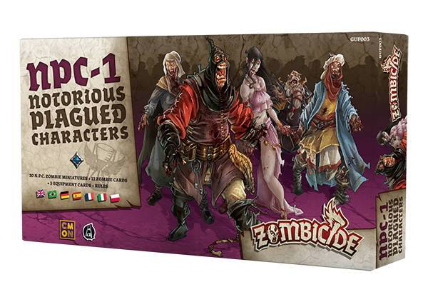 Zombicide: NPC-1 - Notorious Plagued Characters to dodatek do Zombicide: Czarna Plaga i Zombicide: Zielona Horda, kultowych kooperacyjnych gier planszowych, w których liczą się tylko miecze, topory, sześciu Ocalałych i horda zombie do wybicia.